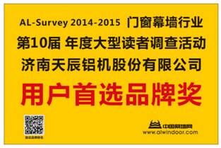 AL-Survey讀者調(diào)查活動(dòng)全稱:中國(guó)幕墻網(wǎng)年度大型讀者調(diào)查活動(dòng)暨“我最喜愛(ài)品牌”評(píng)選活動(dòng)。(以下簡(jiǎn)稱AL-Survey)我司作為設(shè)備領(lǐng)域的領(lǐng)先企業(yè),自上界獲得用戶首選品牌及市場(chǎng)表現(xiàn)獎(jiǎng)之后,2015年再次憑借“天辰鋁機(jī)”品牌在市場(chǎng)中的優(yōu)異成績(jī),強(qiáng)勢(shì)入圍2015-2016年度第11屆門(mén)窗幕墻品牌榜活動(dòng)。通過(guò)近十萬(wàn)名活動(dòng)參與者的票選,AL-Survey將成為我司年度市場(chǎng)品牌推廣與產(chǎn)品銷(xiāo)售、服務(wù)質(zhì)量的晴雨表。