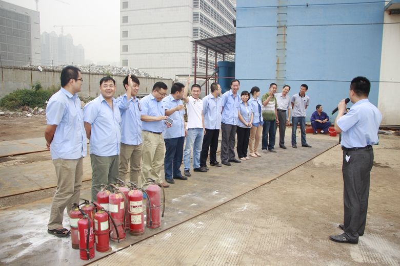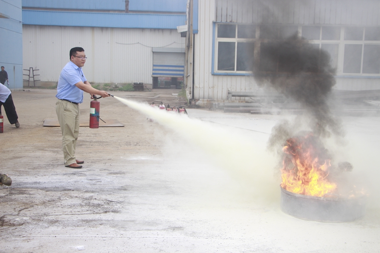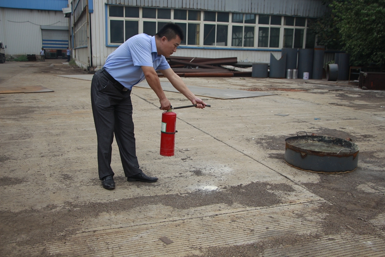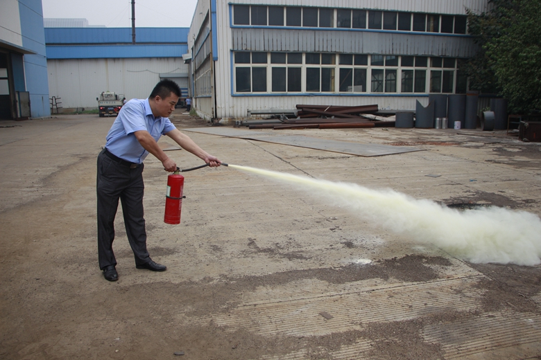 09月24日上午九點(diǎn),所有參與演練人員在預(yù)定地點(diǎn)集合,總指揮亓總再次重申重視消防安全的重要性與必要性,由王元軍主任為員工進(jìn)行了消防安全知識培訓(xùn),并講解手提式滅火器的正確使用方法。