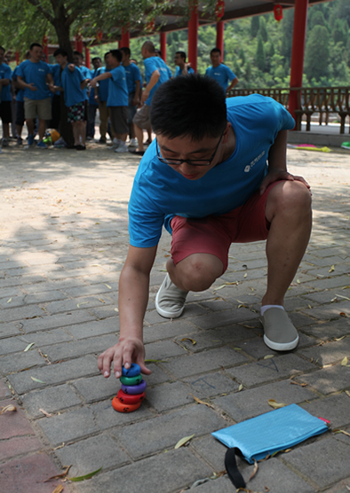 由于當日氣溫比較炎熱,室外拓展進行了團隊塔、愛的傳遞等運動量低但需要團隊合作才能過關的項目。為了能完成教官布置的挑戰(zhàn),各小隊都能緊密協(xié)作,合理分工,整個挑戰(zhàn)過程中除了環(huán)環(huán)相扣的團隊合作,也不乏個人智慧的閃現(xiàn)。